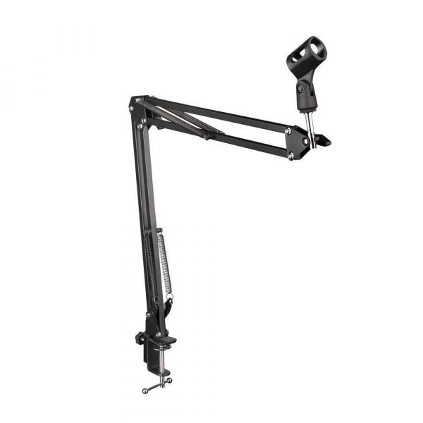 - Fabricado de marco de acero de alta calidad- Aguanta una carga máxima de 2Kgs,- Pipeta de plástico incluida, robusta y durable.- Tipo plegable, conveniente para llevar tu micrófono a donde se desee.- Puedes ajustar tu micrófono a la altura deseada y ajustar el ángulo y altura adecuado para obtener una voz óptima.- Fabricado en METAL de alta resistencia con un ángulo de movimiento de 360º. Largo de los brazos: 36,5 cm. Alto total de la morsa sujetadora a base: 7,5 cm Este soporte de micrófono flexible es ideal para estudios de radio o de doblaje y para cabinas de grabación compactas.Además gracias a su montaje universal es compatible con todos los micrófonos dinámicos y condensador del mercado, pudiendo adaptar diferentes shockmount y pipetas.Con movimiento articulado y pinza giratoria, este soporte permite colocar micrófonos de condensador, además de un anti pop mientras se mantiene estable en la posición que tú elijas.Un práctico sistema de muelles se encarga de la articulación, mientras que su método de sujeción se encarga de la estabilidad, anclando el soporte a tu mesa.El soporte está equipado con un resistente soporte de resorte para que pueda aguantar mucho más peso. Su micrófono se mantiene con seguridad y firmeza en esta brazo tipo clip.