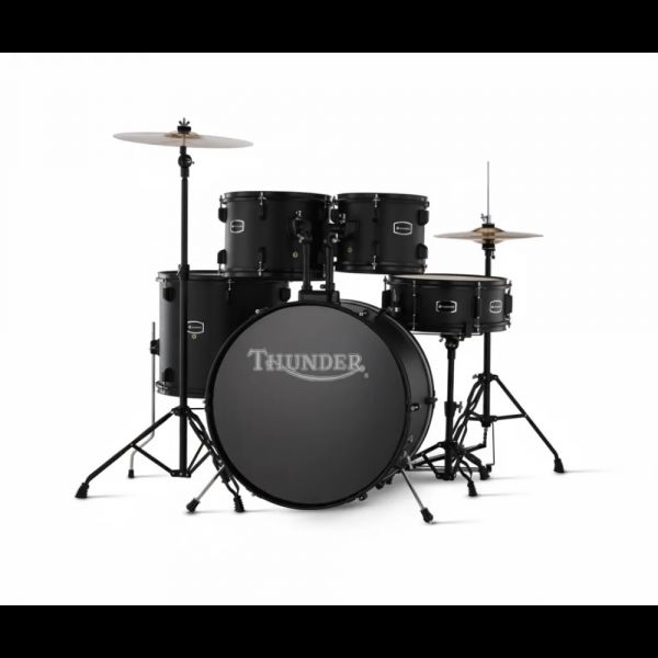 Thunder Bateria 5 Cuerpos con Fierros, Platillos y Banqueta
