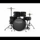 Bateria 5 cuerpos con 5 Fierros: Soporte de Hi Hat + Soporte Platillo Recto + Soporte de Redoblante + Pedal Bombo + Banqueta. Acabado Negro |con Platillos 14" Hi Hat + 16" Crash . Bombo 22" Toms 10" 12", TF 16" Redoblante 14" .Herrajes Negros . Color Black Sparkle.